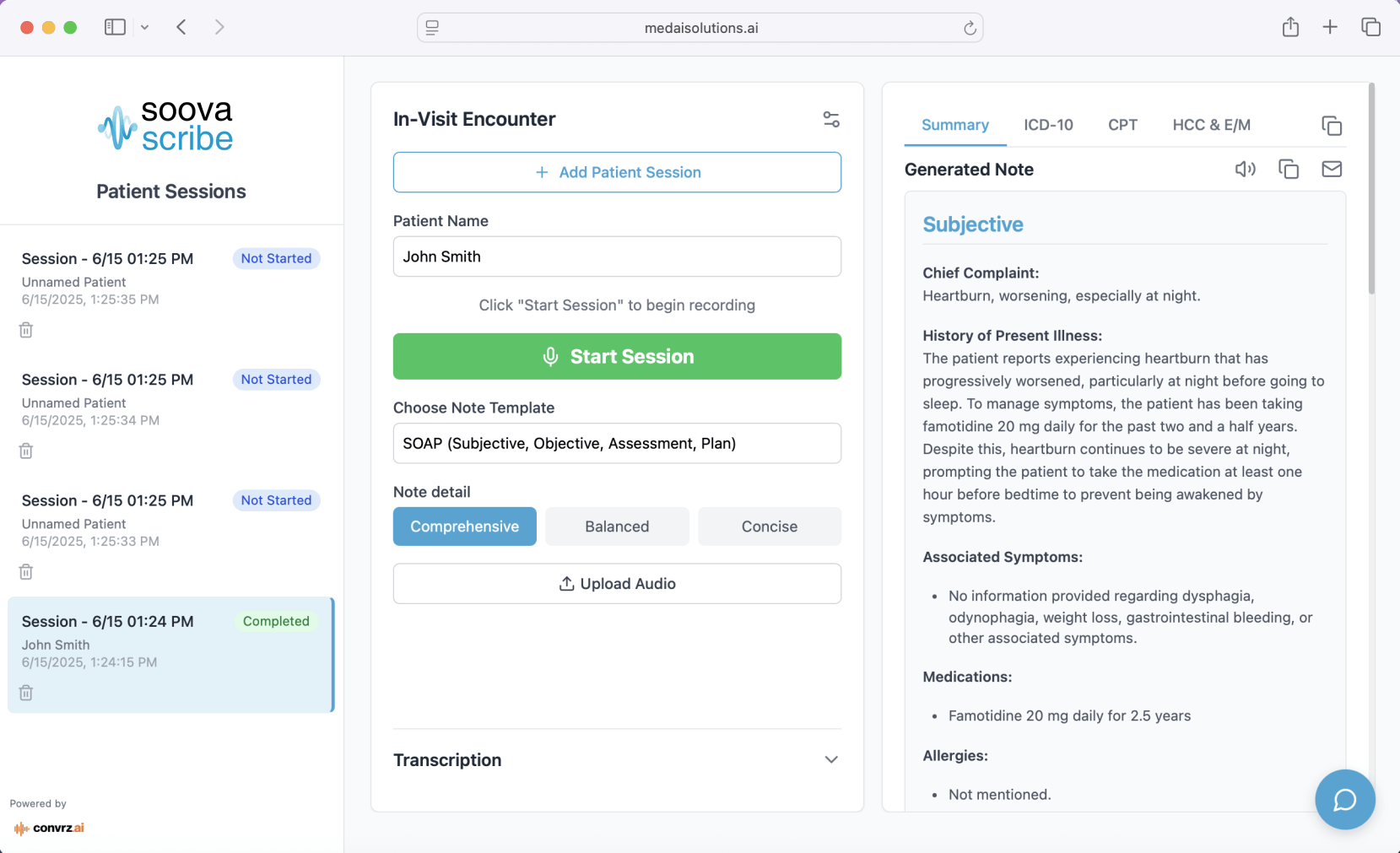 Excels at capturing every crucial detail during patient consultations, allowing physicians to focus entirely on patient care With exceptional listening skills and discretion, Soova Scribe creates comprehensive and accurate medical notes.